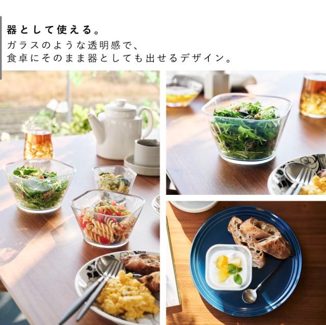 ガラスのような透明感で、食卓にそのまま器としても出せるデザインです。
