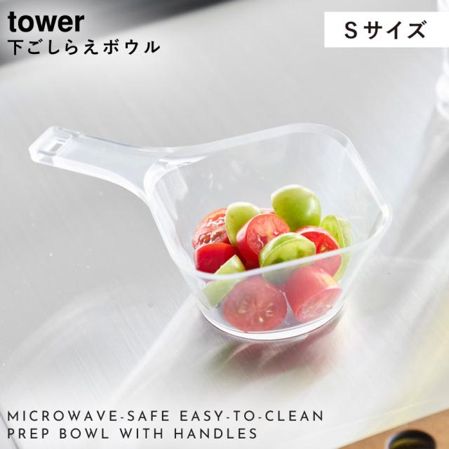 電子レンジ対応洗いやすいハンドル付き下ごしらえボウル タワー S クリア 山崎実業 tower プラスチック 透明 ボウル レンジok 食洗機対応 食器 おしゃれ 10129
