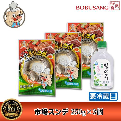冷蔵便【自家製】市場スンデ (250g)x3パックセット★イプセジュ 200mlx1本(16%)つき!韓国風ソーセージ 韓国のドラマや映画によく出てくるおやつです お酒のお供にもピッタリ!ヘルシー 韓国屋台 トッポキの相棒 韓国お惣菜 韓国料理