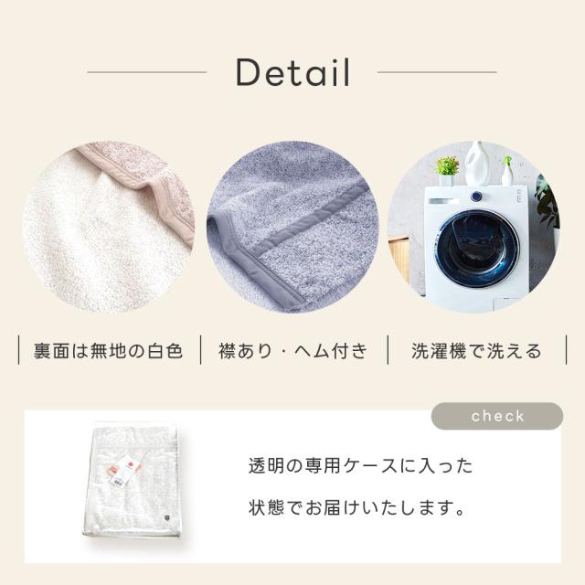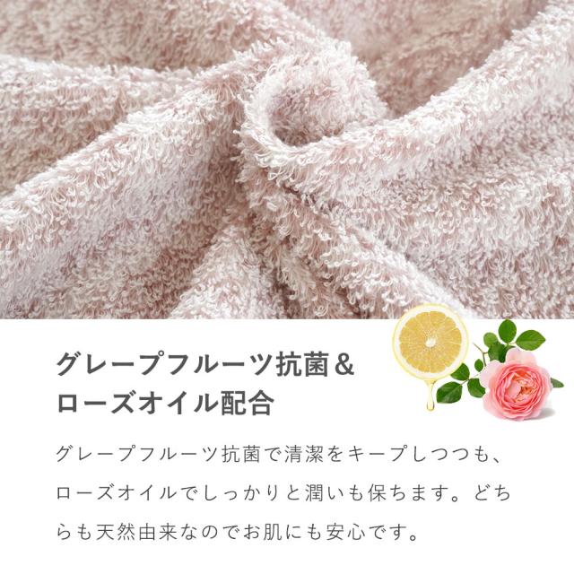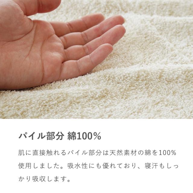・パイル部分 綿100% 肌に直接触れるパイル部分は天然素材の綿を100%使用しました。吸水性にも優れており、寝汗もしっ かり吸収します。 ・パイル抜けしにくく丈夫で長持ち高級ホテルのタオルにも使われる特殊な製法「FBZ編み」 により、パイル抜けしにくく丈夫な仕上がり。耐久性が高く、長く愛用できます。 ・グレープフルーツ抗菌&ローズオイル配合グレープフルーツ抗菌で清潔をキープしつつも、 ローズオイルでしっかりと潤いも保ちます。どちらも天然由来なのでお肌にも安心です。 ・やさしく上品な『杢調』の色合い杢調ならではの落ち着いたやわらかい風合いが、 それぞれのカラーに、やさしく上品な印象を与えます。 ・ご家庭の洗濯機で洗える毎日使う寝具は、汗や皮脂などが蓄積されています。清潔への一番の近道はお洗濯すること。こまめにお洗濯して、気持ちよくおやすみください。 |