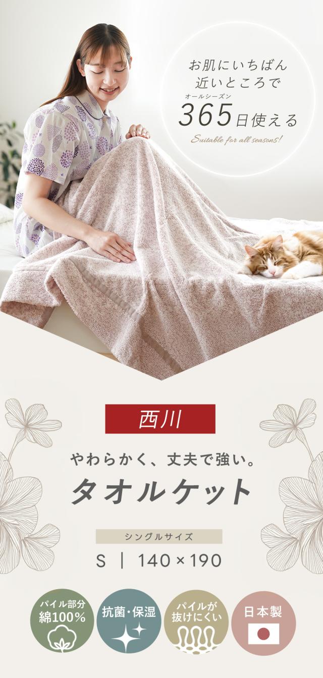 [keyword|西川 タオルケット 日本製 泉州 抗菌・保湿加工 約1.1kg 洗える 春 夏 丈夫で長持ちなFBZ編み 綿100% 抗菌加工 ローズオイル加工 国産 杢カラー パイル抜けしにくいFBZ編み 丸洗いOK 夏用 タオルケット 寝具 無地 綿 抗菌 当社限定]