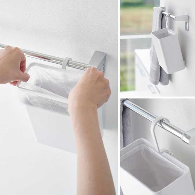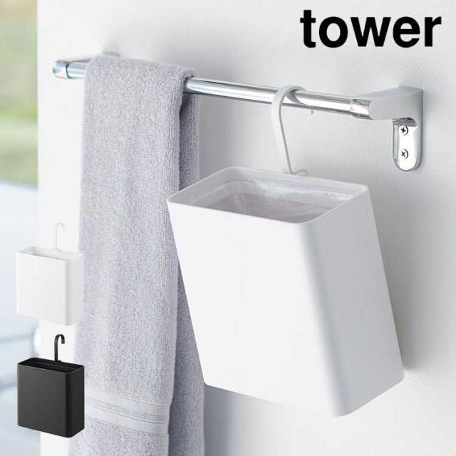 引っ掛けられるゴミ箱 タワー 山崎実業 ゴミ箱 引っ掛け ミニゴミ箱 おしゃれ ごみ箱 フック シンプル ダストボックス ホワイト ブラック 10219 10220 tower 公式 袋止めリング付き 手軽 キッチン 浴室 バスルーム 洗面所 オフィス トイレ タオルバー ワゴン 広口 壁掛けゴミ