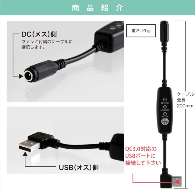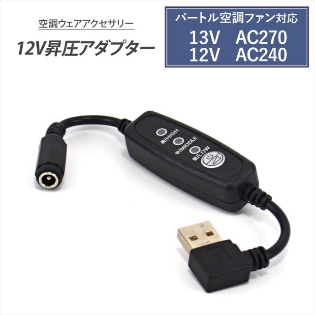 | 商品名 | 12V USB昇圧アダプター 風量調整3段階スイッチ付き 【12V-B】 |