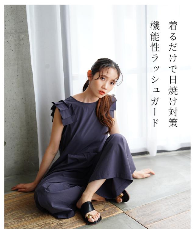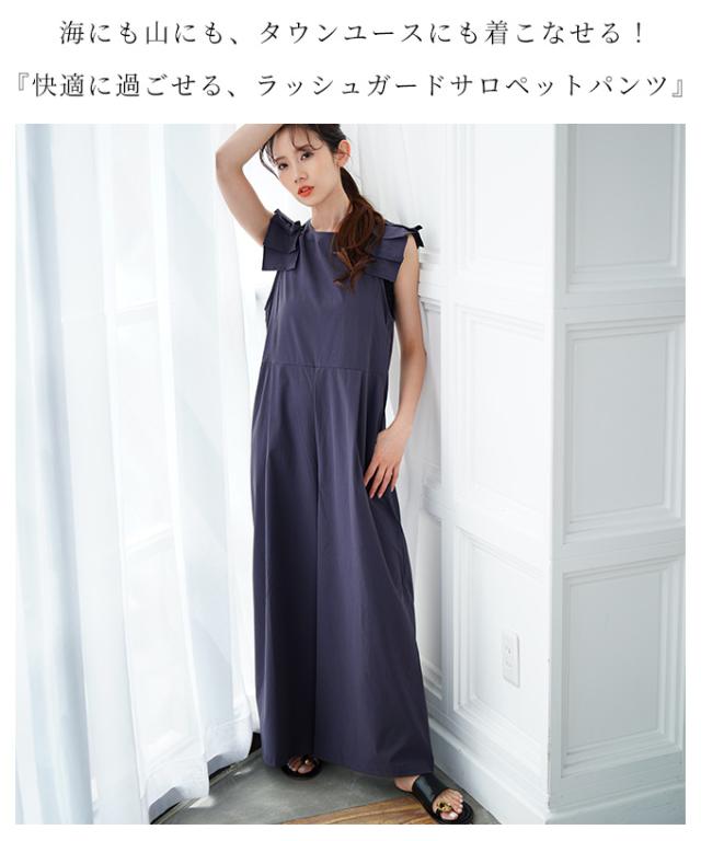 冬新作 お洒落に陽射しから肌を守るラッシュガードサロペットパンツ レディース ファッション サロペット パンツ 紫外線対策 UVカット 速乾 ワイド ロング 夏 30代 40代 50代 60代 サワアラモード sawaalamode otona 大人 cawaii 可愛い 洋服 かわいい服 almam-2808