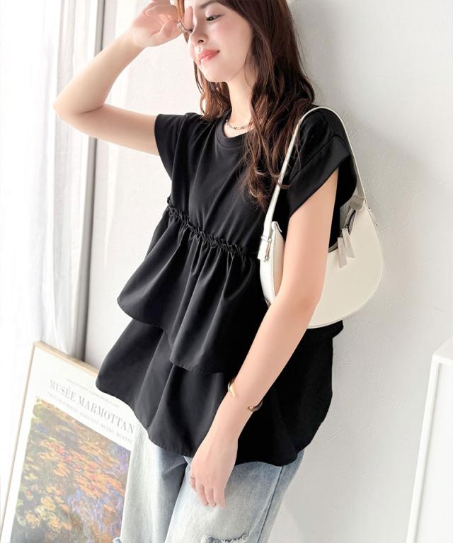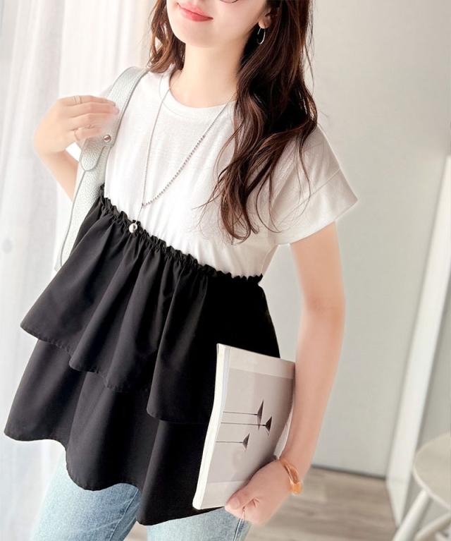 クラシカルエルフ冬新作 トップス Tシャツ レディース アシンメトリー 華やか ティアード フリル 切り替え T 半袖 大きいサイズ 2025ss ce1260481