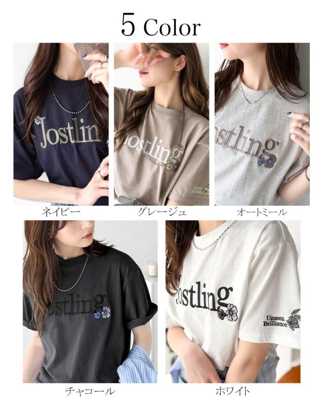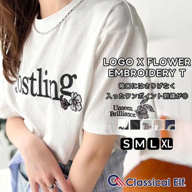 クラシカルエルフ冬新作 トップス Tシャツ レディース 綿 100% 天竺素材 ロゴ × フラワー 刺繍 ビッグ T 半袖 大きいサイズ 2025ss ce1260485