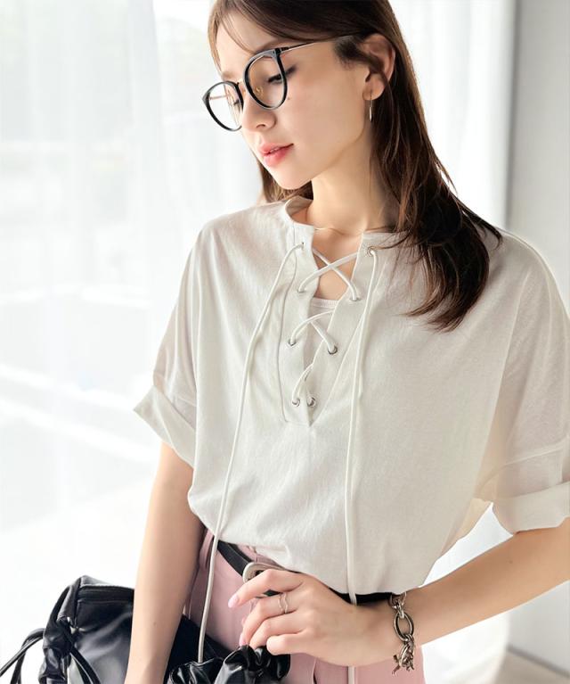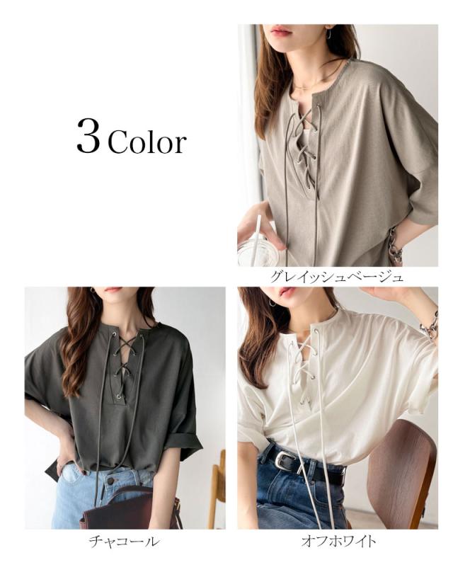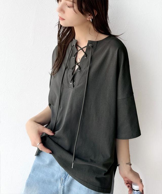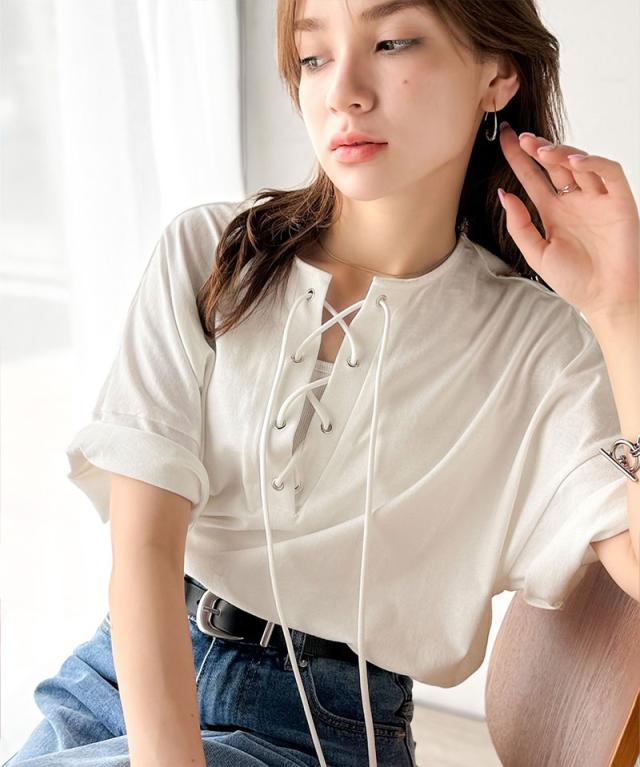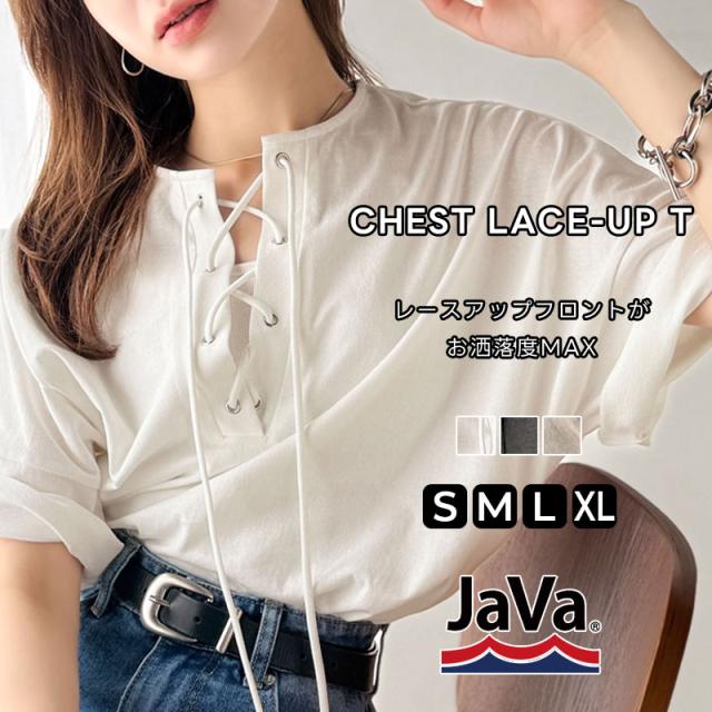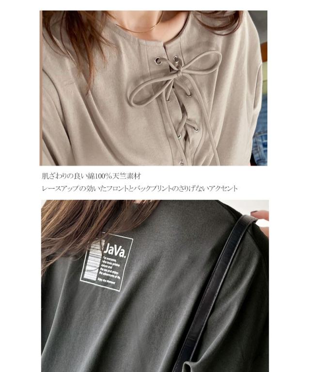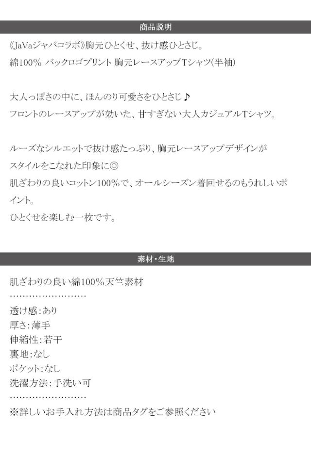 クラシカルエルフ冬新作 javaジャバコラボ トップス Tシャツ レディース 綿100% バック ロゴ プリント 胸元 レースアップ T 半袖 大きいサイズ 2025ss jv1260458