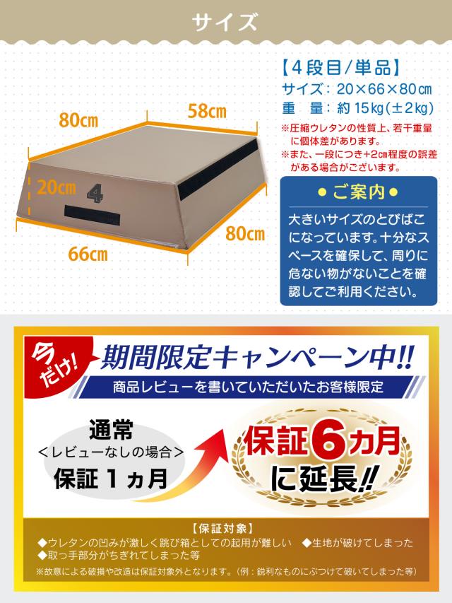 | 商品名 | 跳び箱 室内 子供 高学年向け ソフト 飛び箱 とび箱 ジョイント式 小学生 指導ライン 高重量 運動 自宅 子ども 室内 家庭用 4段目のみ 単品 |