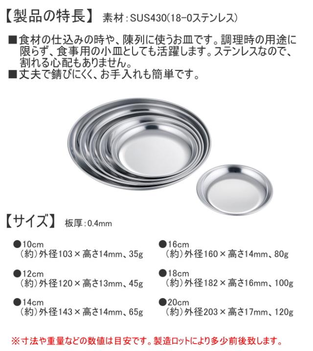 18-0 市場用丸皿 16cm 1枚 日本製 18-3ステンレス 丸皿 皿 お皿 取り皿 シルバー 丈夫 サビにくい 割れない 衛生的 キッチン キッチン用品 食器 容器 調理 調理道具 赤川器物製作所