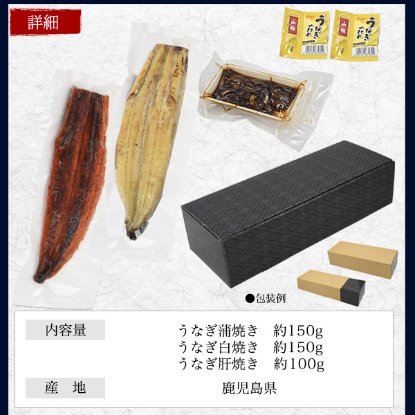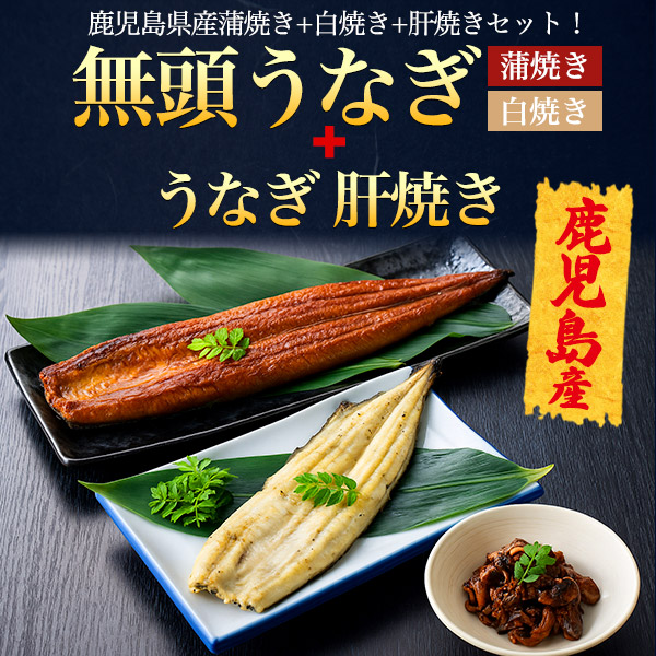 うなぎ 国産 無頭うなぎ 150g×2尾 +肝焼き 約100g(蒲焼き・白焼き 各1尾)鹿児島県産 うなぎの蒲焼 土用丑の日 どよう丑の日 タレ付き ウナギ 人気 おすすめ 国産鰻 2025年 お歳暮 ギフト 鰻 クール便 日本 送料無料