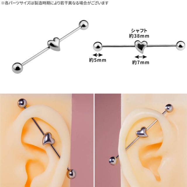 ハート インダストリアル 16G サージカルステンレス シルバー ヘリックス インダストリアル 軟骨ピアス ボディピアス ロングバーベル