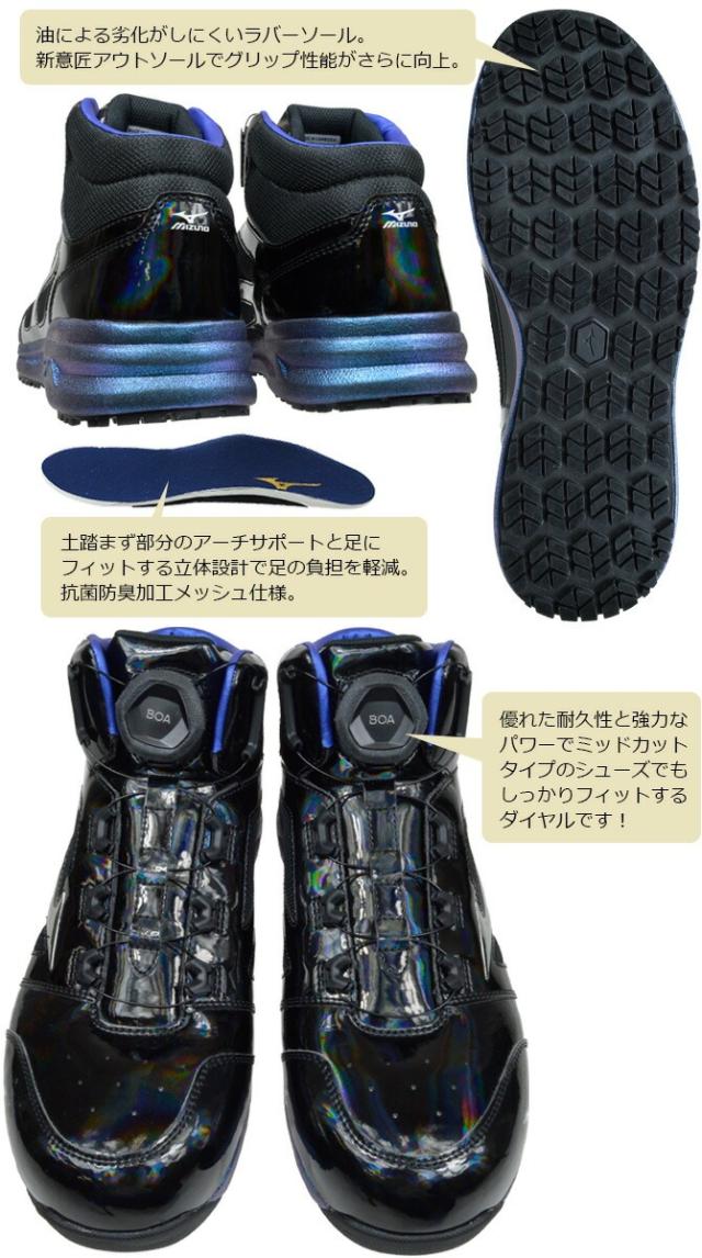 ミズノのテクノロジーを駆使したワーキングシューズ「オールマイティー」のBoaを搭載した限定モデルです。