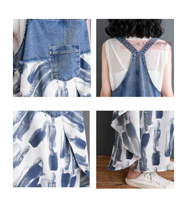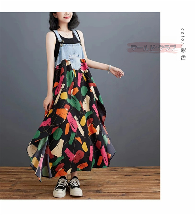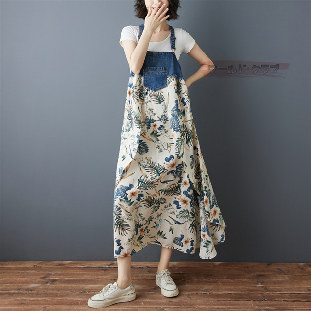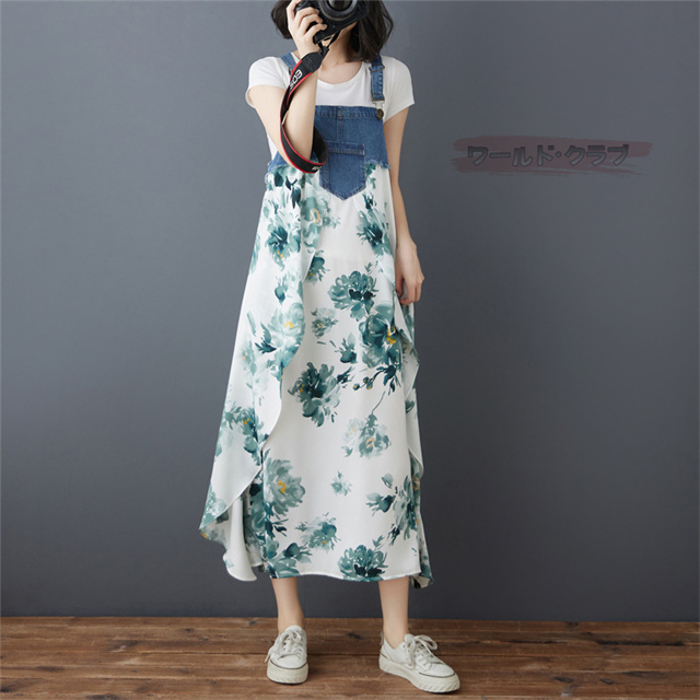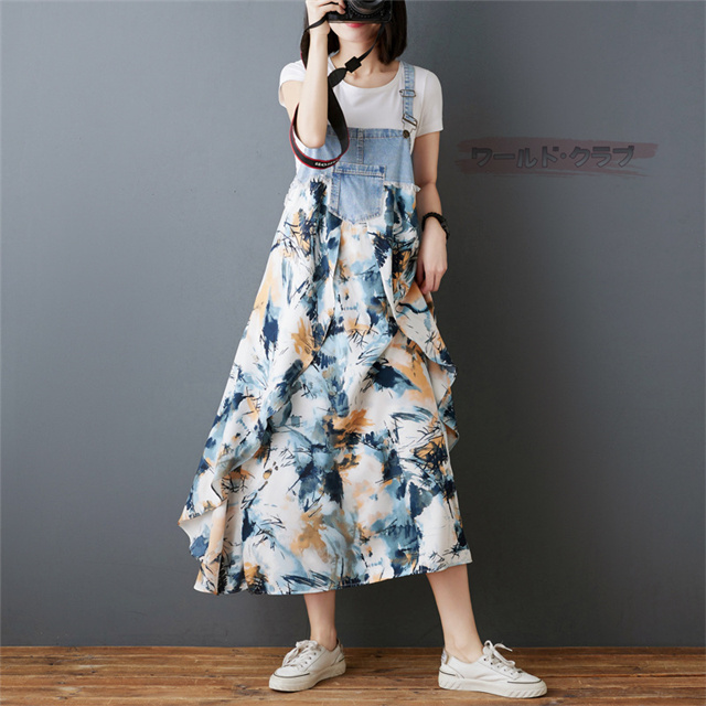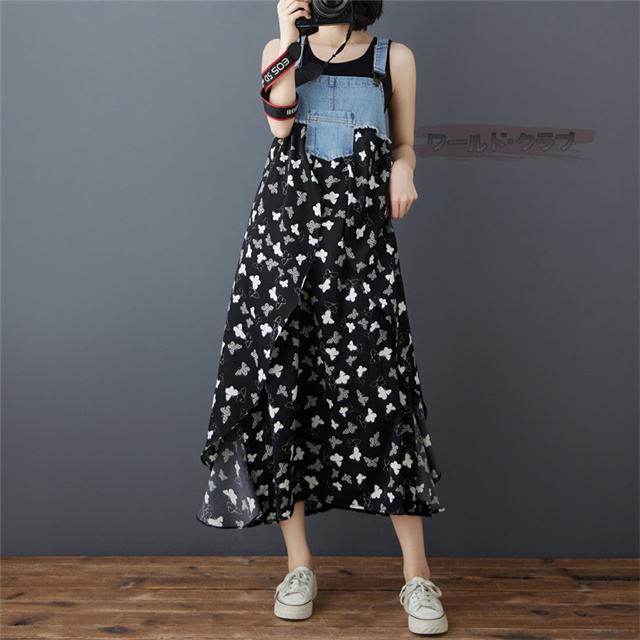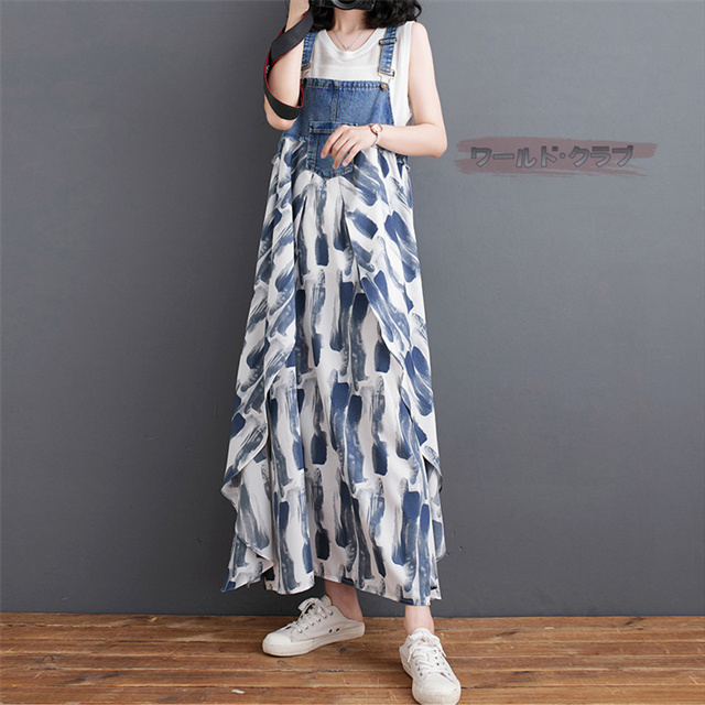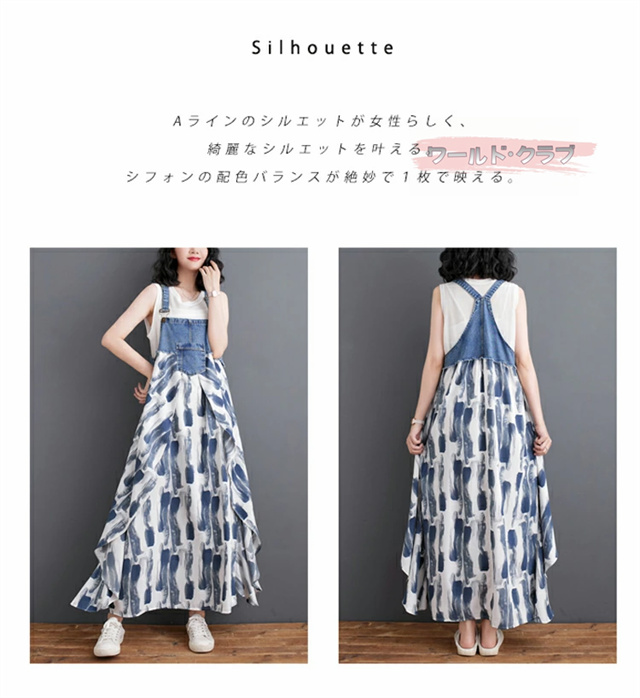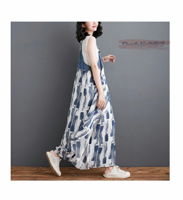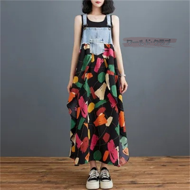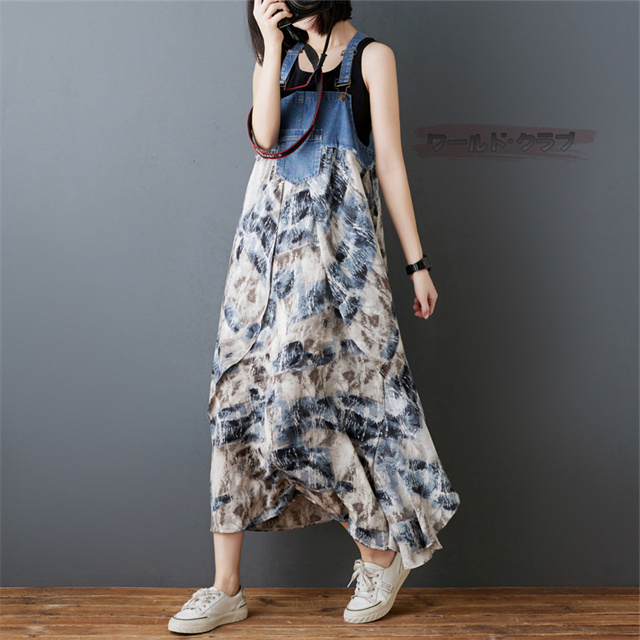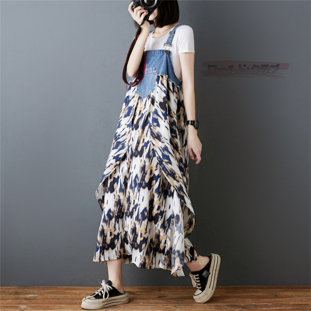 サロペットワンピース レディース オールインワン 切り替え デニム サロペット 異素材 切り返しデザイン デニムサロペット ワンピ ロング レディースファッション ゆったり 楽ちん オーバーサイズ 体型カバー マタニティ 春 夏 秋 大人