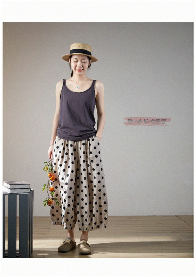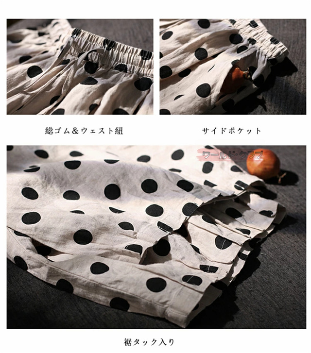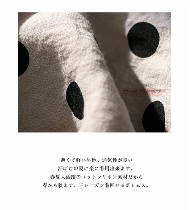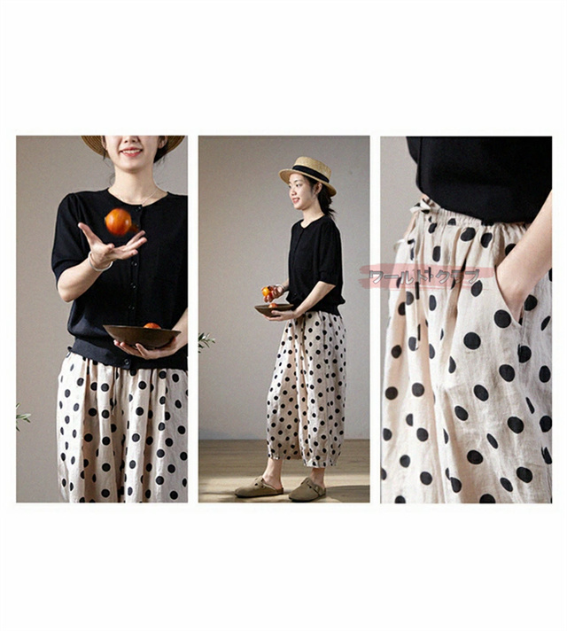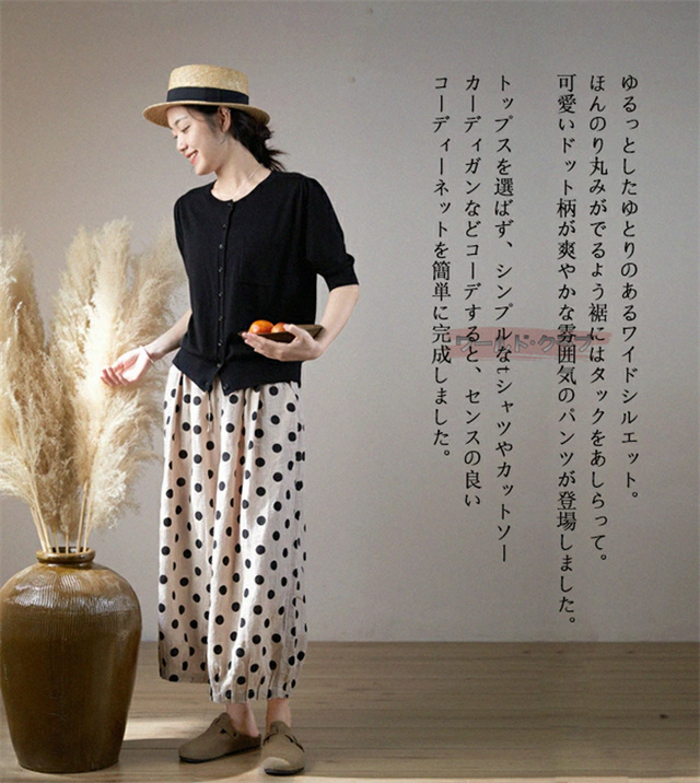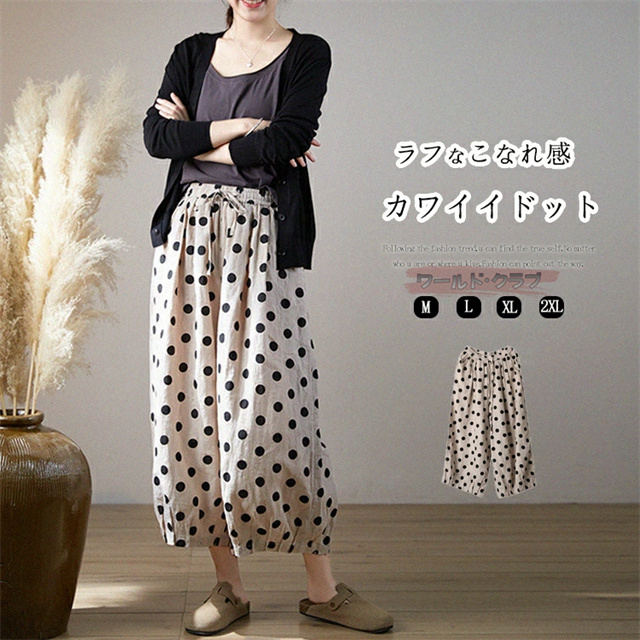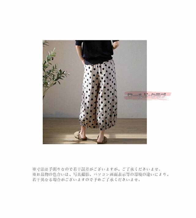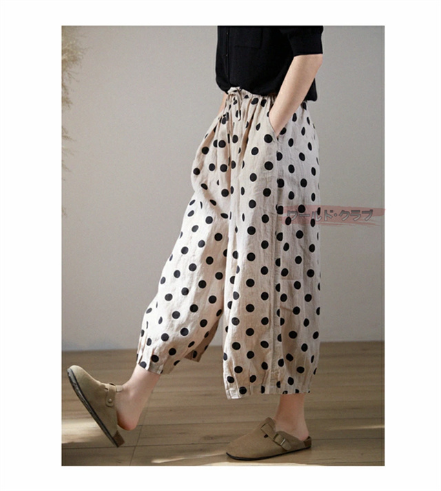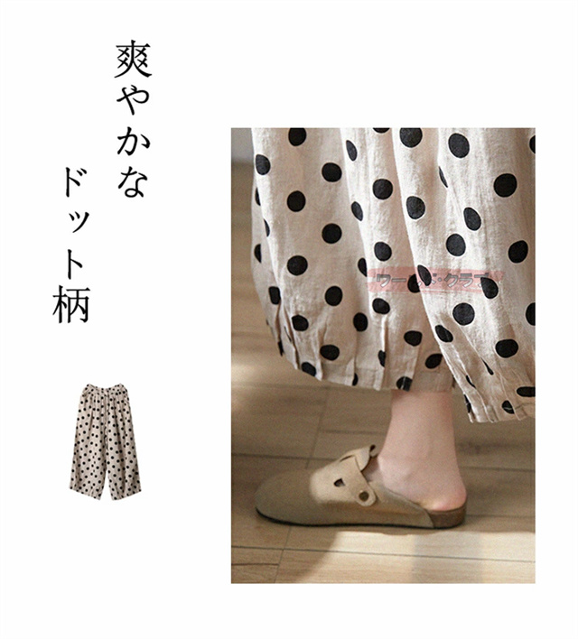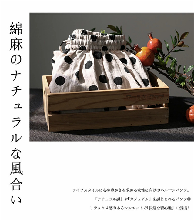 ドット柄 レディース パンツ きれいめ バルーンパンツ コットン 麻 ゆったり サーカスパンツ 大きいサイズ バルーン イージーパンツ ワイドパンツ ルーズ カジュアル ドット柄パンツ 可愛い ドット 水玉 サルエルパンツ 体型カバー 着痩せ