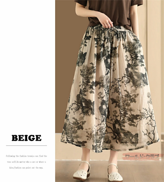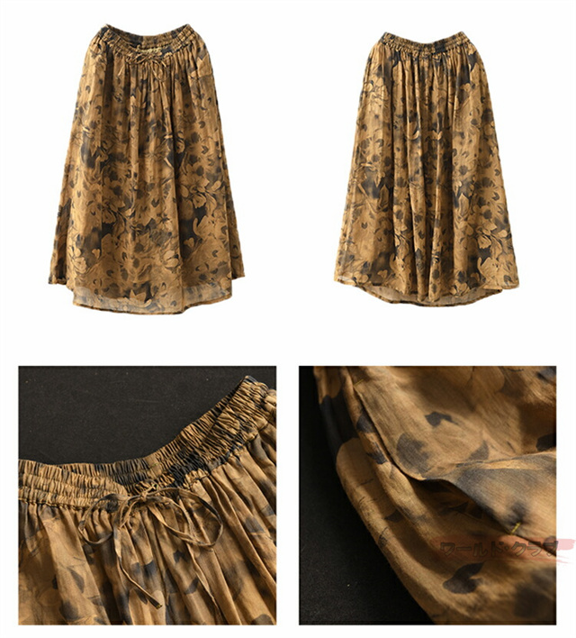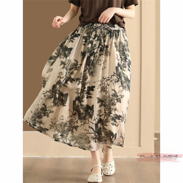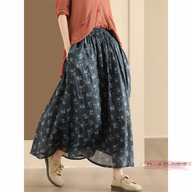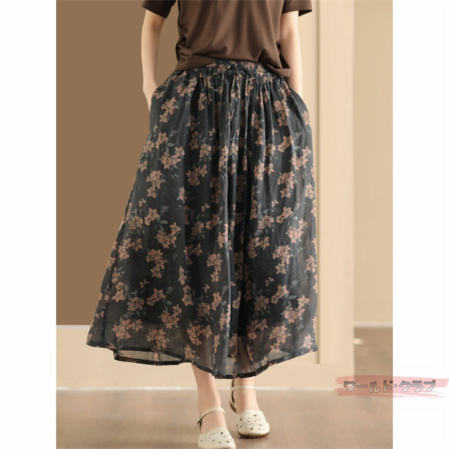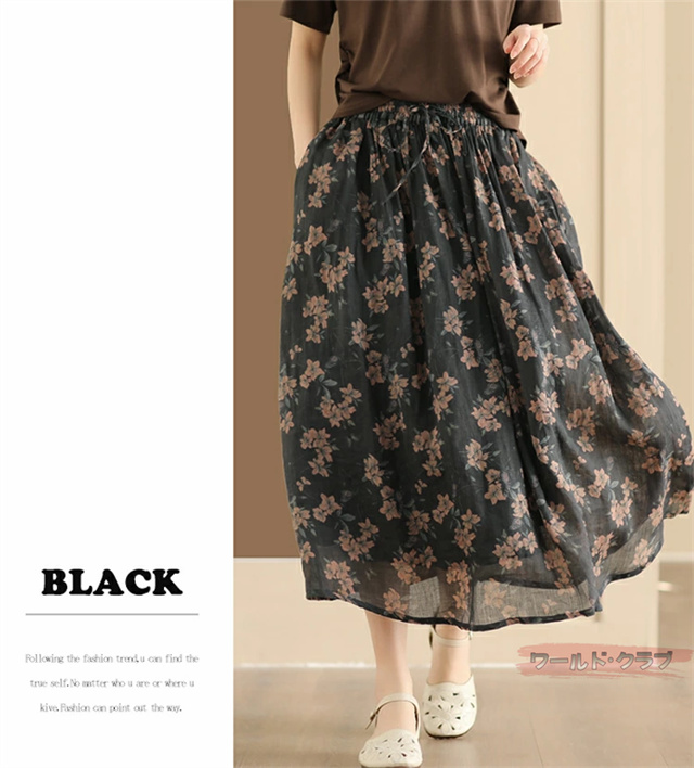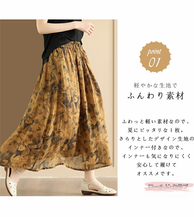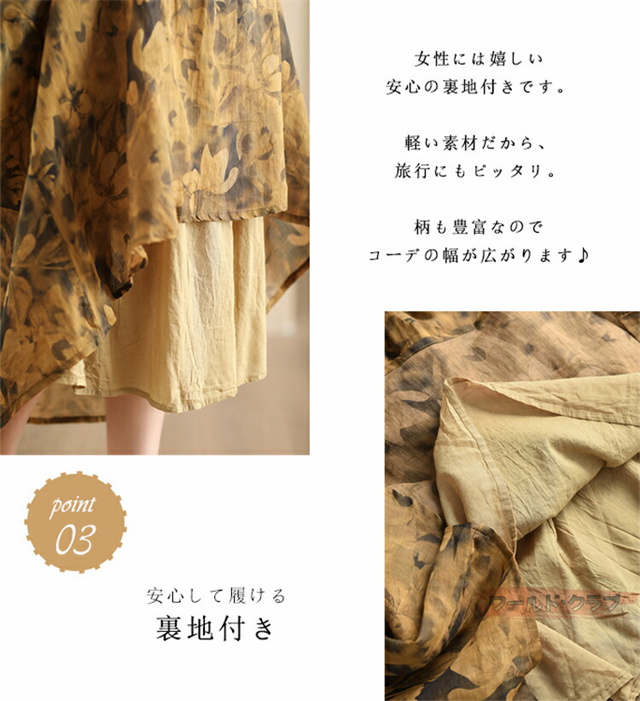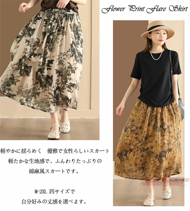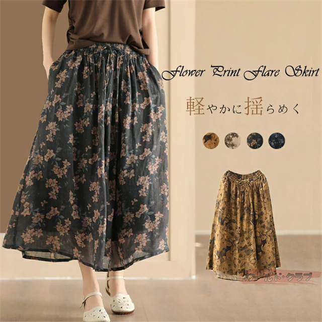 フレアスカート 花柄 スカート ロング レディース 花柄スカート ひざ丈 膝下 aラインスカート ミモレ丈 ふんわり フレア 軽い ロングスカート 春 aライン 綿麻風 裏地 ミモレ丈スカート プリント フラワー 綿麻風スカート 旅行 海 着痩せ