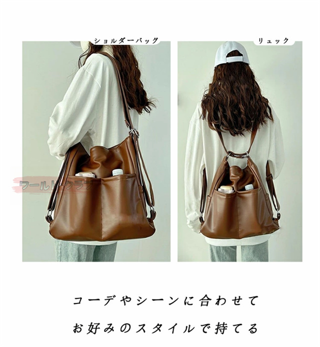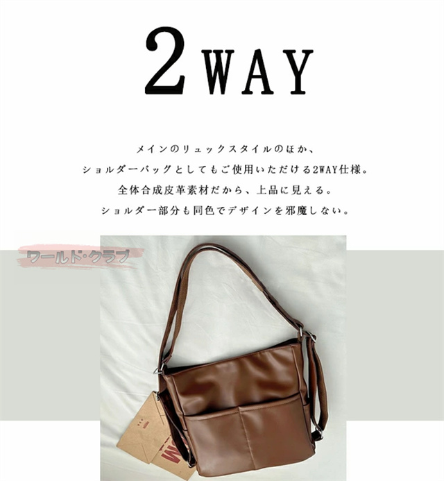 リュック レディース レザーリュック 2WAY リュック 光沢 革 ショルダーバッグ 大容量 多収納 肩掛け おしゃれ 2wayバッグ 皮革 通勤 オフィス 斜め掛け かばん バックバッグ 斜め掛けバッグ 大人 カジュアル 柔らかい トートバッグ 通学