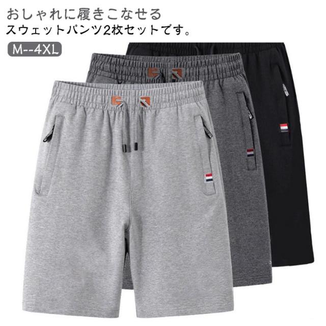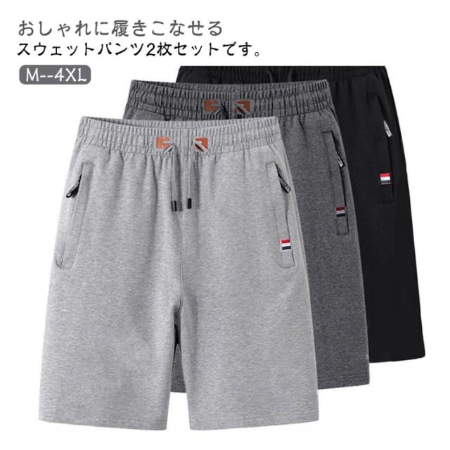 スポーツ ジャージ 7分丈 メンズ 下 接触冷感 大きいサイズ ダンス ひんやり ストレッチ 膝下丈 スウェットパンツ 涼しい ハーフパンツ パンツ ゴルフウェア クロップドパンツ ファスナーポケット ジャージパンツ 半ズボン カジュアル 2枚セット 夏 無地