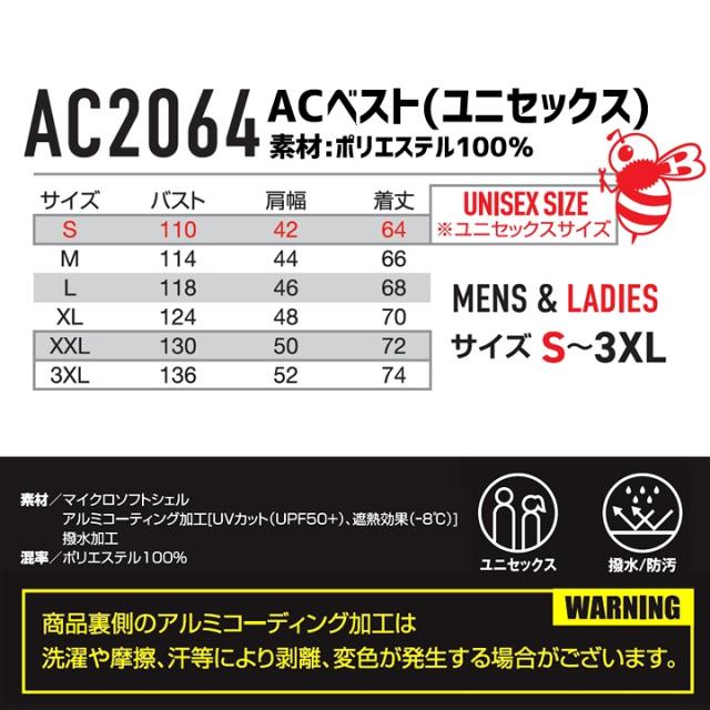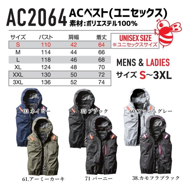 【即日発送】バートル 空調 2025年モデル ベスト 【服のみ】エアークラフト ファン対応 AC2064 男女兼用 サイドファン ジャケット 熱中症対策 撥水加工 アウトドア スポーツ 作業着 作業服 電動ファン対応作業服