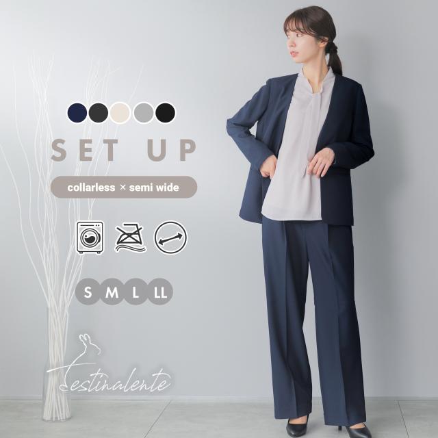 スーツ レディース ビジネス パンツスーツ オフィスカジュアル ストレッチ 洗える 防シワ セットアップ ビジネススーツ ワイドパンツ 30代 40代 50代 S M L LL