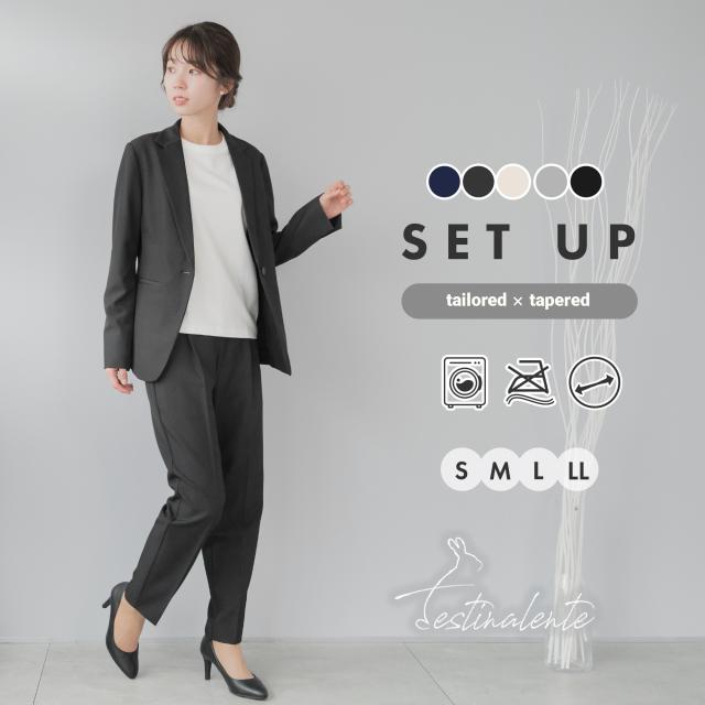 スーツ レディース 洗える セットアップ パンツスーツ ストレッチ ノーカラー イージーケア 20代 30代 40代 50代 オフィスカジュアル ビジネススーツ 通勤