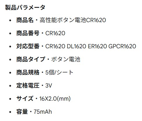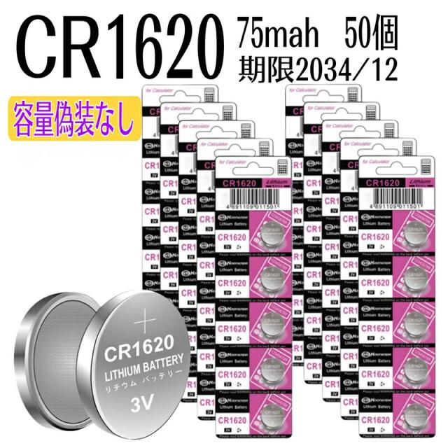 商品詳細: 容量75mAhのCR1620コイン型リチウム電池電池です。ブリスター個包装5個入り×10シートで50個入りのまとめ買いセットです! 大量使用にもうってつけの価格です!消費期限は2034年12月です。