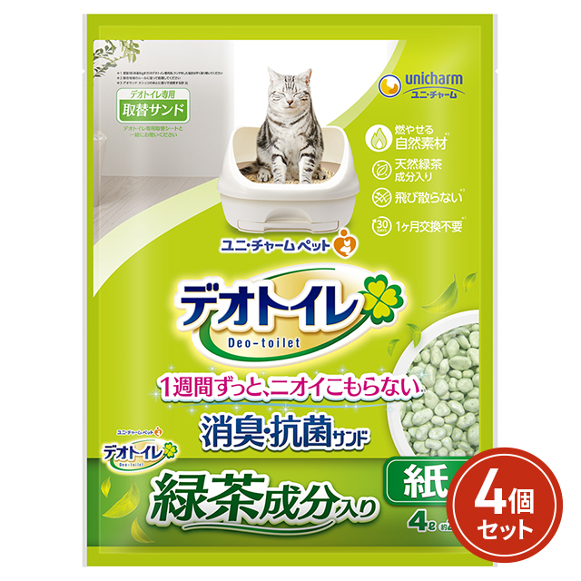 デオトイレ 猫用 緑茶成分入り消臭・抗菌サンド 大容量 4袋セット トイレ 消臭 抗菌 ユニチャーム ペット