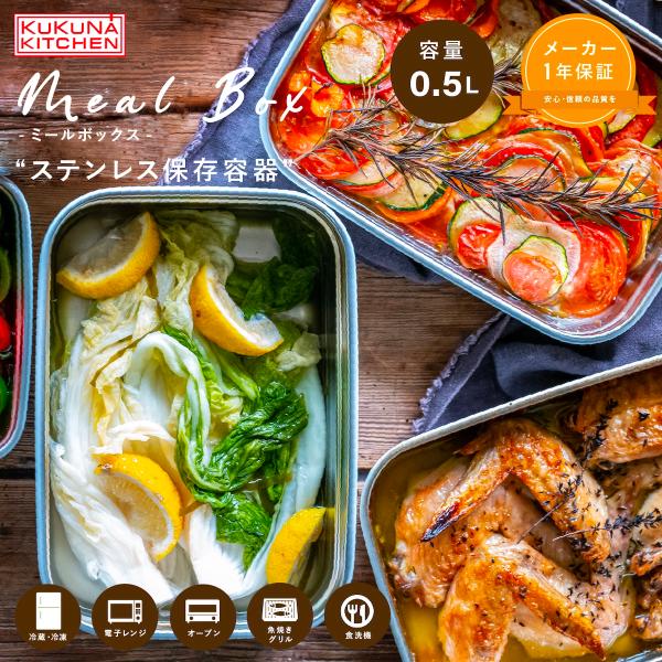 ステンレス保存容器 0.5L ミールボックス ククナキッチン 電子レンジ オーブン グリル 冷凍 冷蔵 対応 キムチ容器 カレー 4サイズ ニオイ移りしにくい 液体 密閉