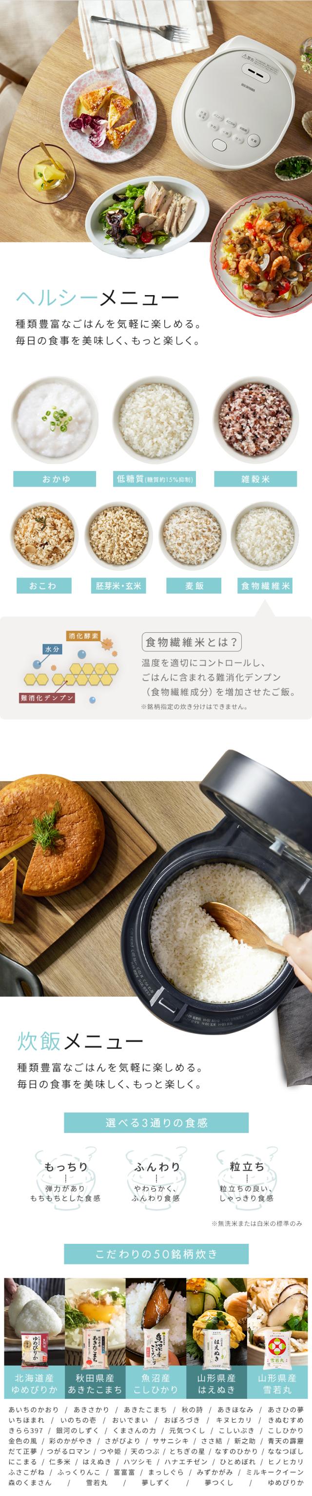 50種類の銘柄に対応した銘柄炊きや、新米のつやとみずみずしさを引き出す新米コースも搭載。