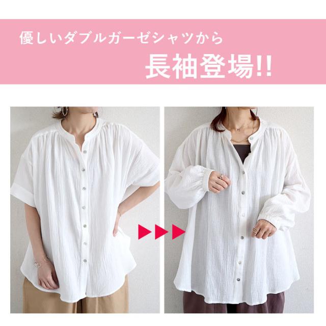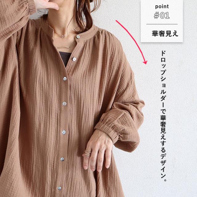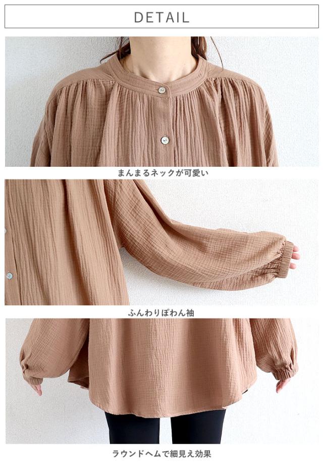 秋新作 シャツ ブラウス レディース ダブルガーゼ 羽織り 綿100% カットソー トップス [郵1.5]^t1089^ ★
