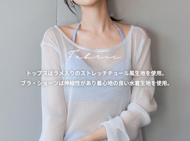 ラメ入りのストレッチチュール風生地で上品な輝きと柔らかな着心地を実現。