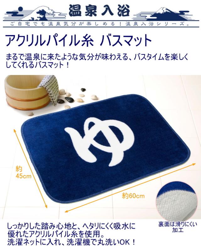 温泉入浴 バスマット 約45×60cm フロ お風呂 バス バスマット マット 浴室マット お風呂場 洗濯OK 滑りにくい アクリルパイル糸 吸水 可愛い おしゃれ オシャレ かわいい 面白い 温泉気分 ゆ文字 ヨコズナクリエーション