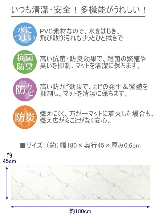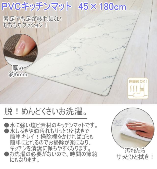 PVC キッチンマット 45×180cm 1枚 キッチン マット キッチンマット PVCマット 撥水 拭ける お手入れ簡単 滑りにくい 弾力 厚み6mm ソフトマット 抗菌 防臭 防カビ 防炎 インテリア 可愛い おしゃれ オシャレ かわいい ヨコズナクリエーション