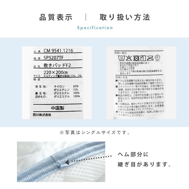 | ・ひんやり素材で夏を快適に 熱伝導率が高い素材を生地に使用。寝返りをするたび体熱を素早く拡散するので、触れるたびひんやり。 ・東洋紡の冷感素材「ツヌーガ®」「ツヌーガ®」は、東洋紡独自の技術により開発された丈夫でホコリが出にくいポリエチレン繊維です。ポリエステル繊維やナイロン繊維に比べ2倍以上の強さ(耐切創性)を示します。また、他の繊維に比べ熱伝導性が高いため、ひんやり感を感じやすくなっています。 ・着脱簡単なゴムバンド付きベッドマットレスにも、敷き布団にも使えます。四隅ゴム付きで着脱がとっても便利。 ・お家で気軽に洗えて清潔汗のかきやすい夏場はとくに汚れが気になるもの。ご家庭でお洗濯OKだから気軽に洗えます。 ・安心の西川品質西川株式会社は、1566年創業の日本有数の寝具メーカー。450年以上の長い歴史がある老舗です。よい睡眠を追求するために、これまでに培った伝統や技術を活かし、また最新の技術を取り入れながら新しい商品を創造しています。眠りや寝具に対するこだわりは強く、そのこだわりの強さが品質の高さに繋がっています。 | |