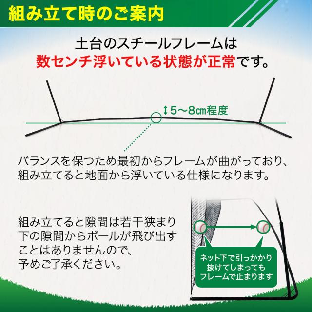 物にぶつかって破損してしまったり、お隣りさん家まで飛んで行ったり…そんなボールを使った練習でお困りの方に!前足がないから動きやすい防球バックネットです。