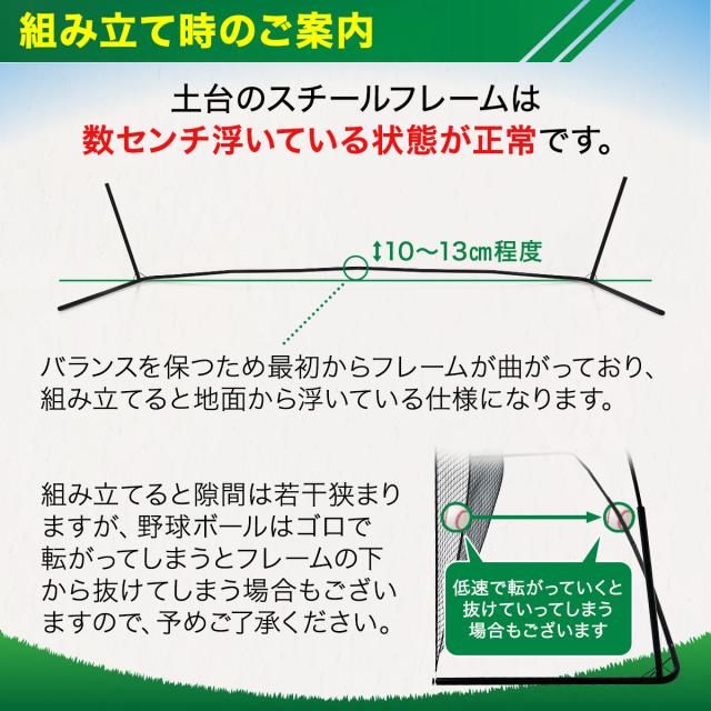 物にぶつかって破損してしまったり、お隣りさん家まで飛んで行ったり…そんなボールを使った練習でお困りの方に!前足がないから動きやすい防球バックネットです。