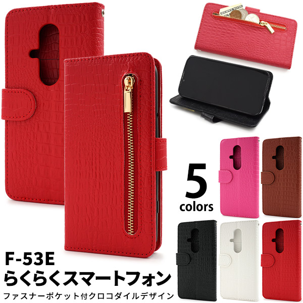 スマホケース らくらくスマートフォン F-53E用 手帳型 クロコダイルレザーデザイン 携帯ケース 装着簡単 シンプル おしゃれ スマホカバー 携帯カバー カジュアル 手帳系 上品 ケータイケース 大人っぽい ワニ柄 上品 ベーシック スマートフォンケース 簡単スマホ シニア