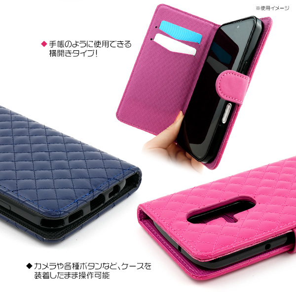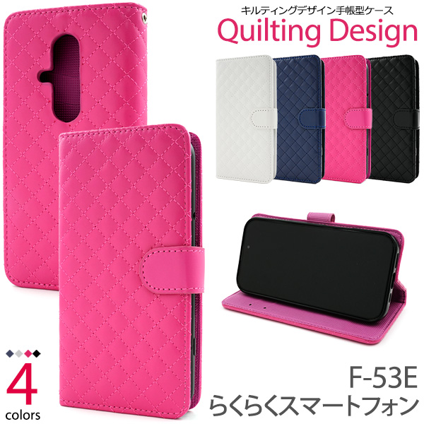 スマホケース らくらくスマートフォン F-53E用 手帳型 キルティングレザー 携帯カバー シンプル かわいい おしゃれ スマホカバー 上品 携帯ケース お洒落 ベーシック 可愛い 大人っぽい こなれ感 大人女子 ケータイケース 簡単スマホ シニア