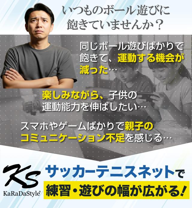 サッカーの技術力アップや、自宅でのボール遊びのマンネリ対策にもおすすめ!対戦形式で遊びたいときにあると便利なサッカーテニスネットです。
