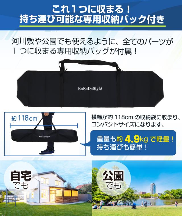 【専用の収納バッグ付き】収納はもちろん、持ち運びしやすい専用の収納バッグ付きです。工具不要で簡単に組み立てが出来るので、どこでも持ち運んで設置することが出来ます。