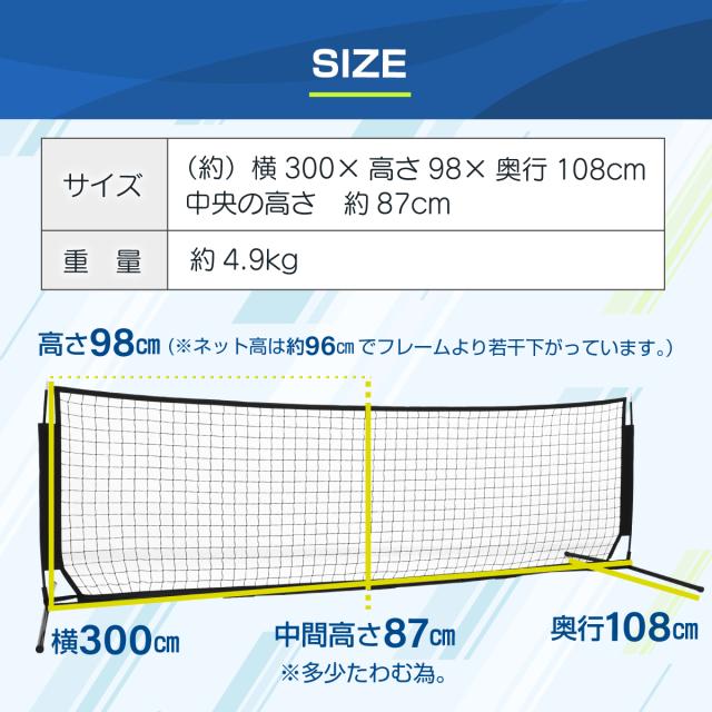 テニス ネット スポーツネット サッカー バドミントン セパタクロー 3×1M 練習用 自宅 庭 公園 持ち運び 簡単設置 折りたたみ 軽量 ポータブル 収納袋付き 300×100cm