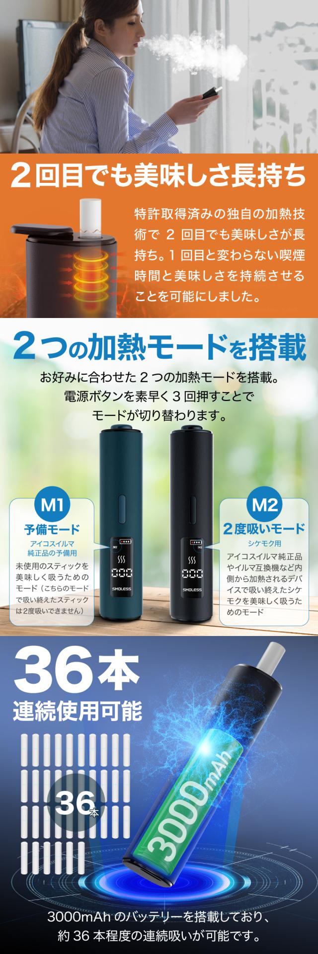 【1本で2回吸える】アイコスイルマ互換機 2度吸い 2回吸える アイコス互換機 シケモク マシーン 最新 連続36本 SMOLESS A1 PRO スモーレス A1 プロ コンパクト IQOSイルマ互換機 電子タバコ 本体 加熱式タバコ ランキング イルマ用 IQOSILUMA用 アイコスイルマワン用
