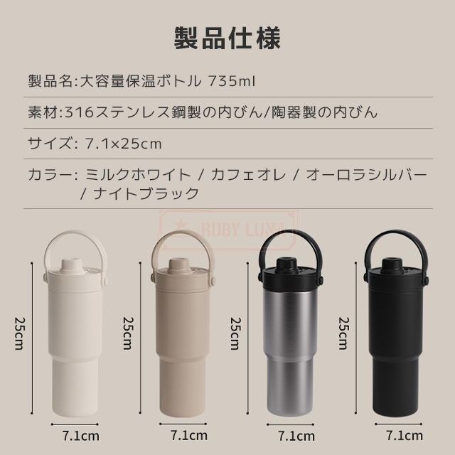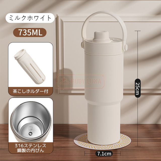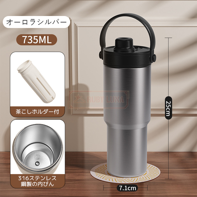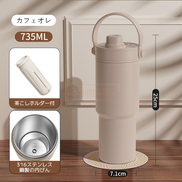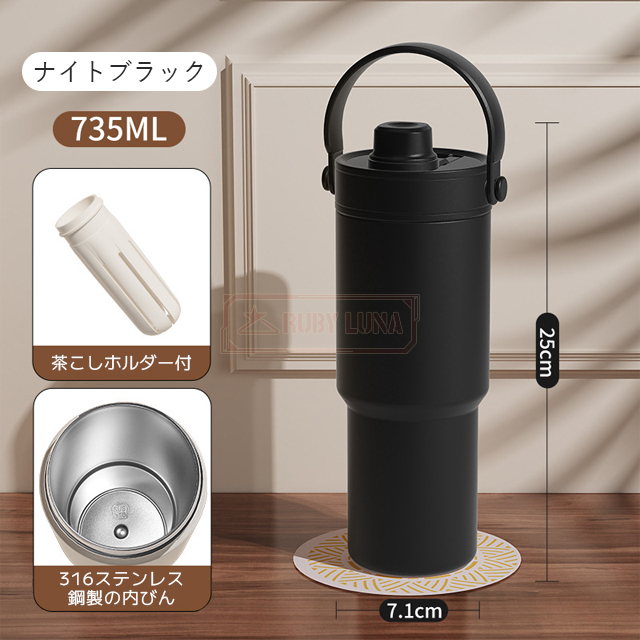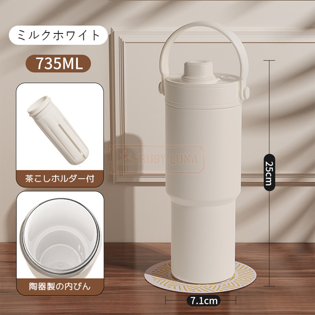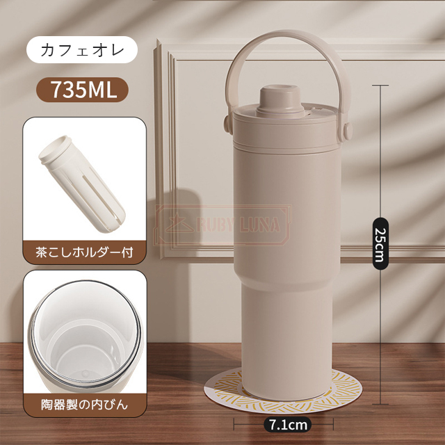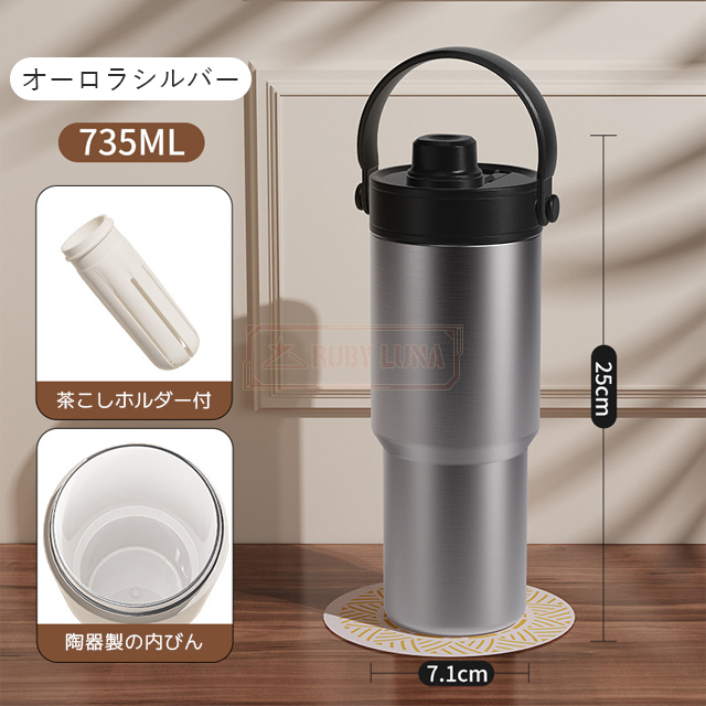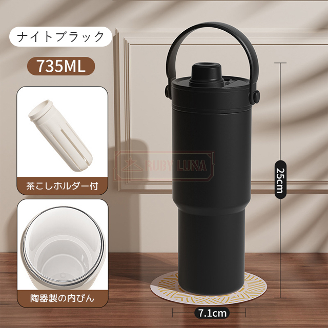最安挑戦 冬新作 送料無料 新作 セラミックタンブラー 水筒 大容量 735ML フィルター付き タンブラー 茶こし付き 蓋付き 保温 保冷 ストロー付き 持ち運び 車内 真空断熱 マグボトル こぼれない 漏れない 3WAY 直飲み ステンレス鋼