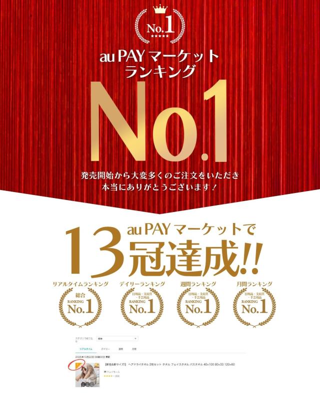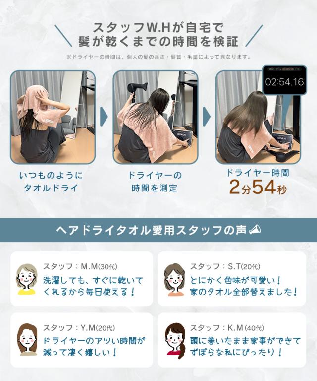 | サイズ | ヘアドライタオル:(約)40×100cm