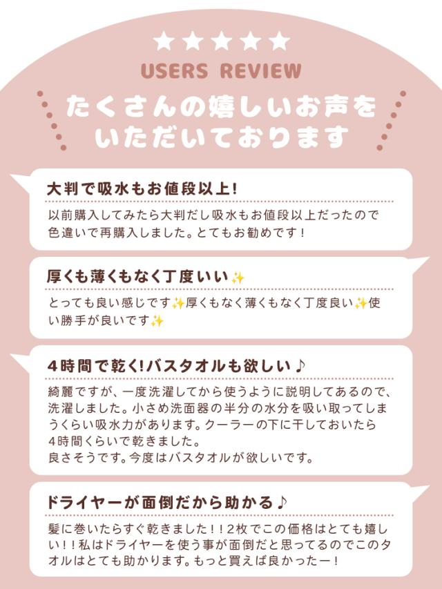 - ふわふわ〜で気持ち良い、水気も吸い取ってくれ髪の乾きがしっかりできて良い感じです