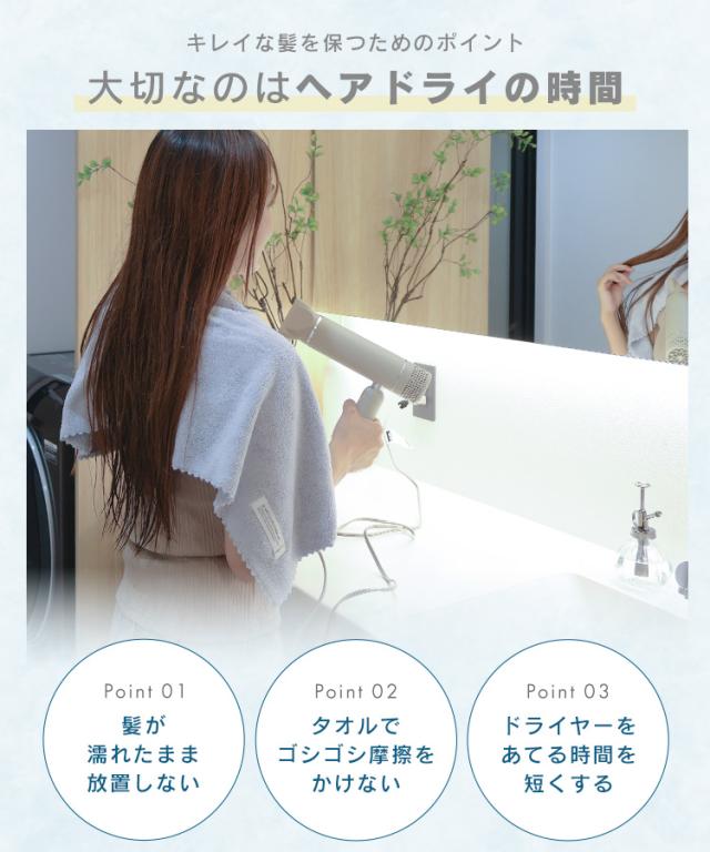 ドライヤー時間を短縮し、熱ダメージを軽減!