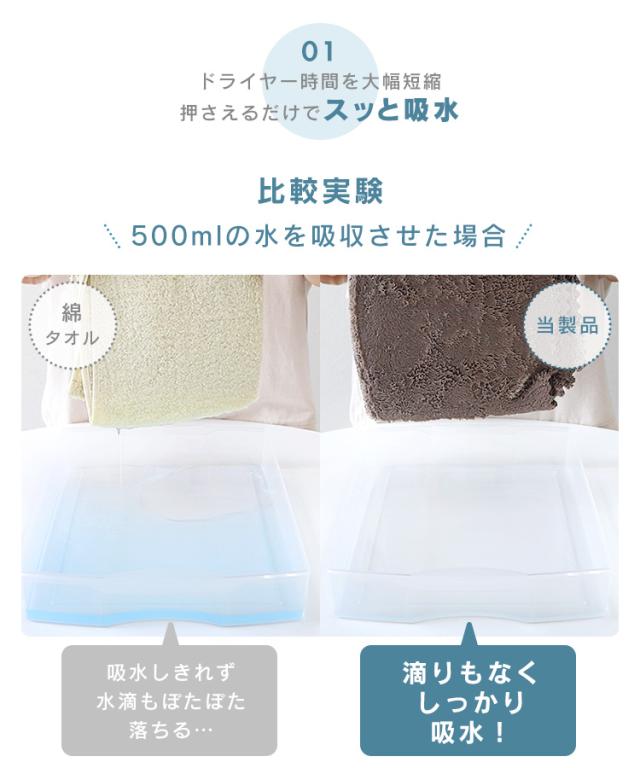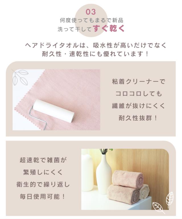 極細マイクロファイバーが髪や肌の水分をすばやく吸収。