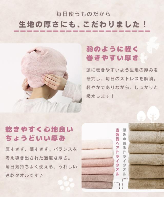 - ヘアドライタオルを購入しました。吸水性が高く、すぐ拭き取れます。洗濯してもすぐに乾きます。2枚入りでお買い得でした。