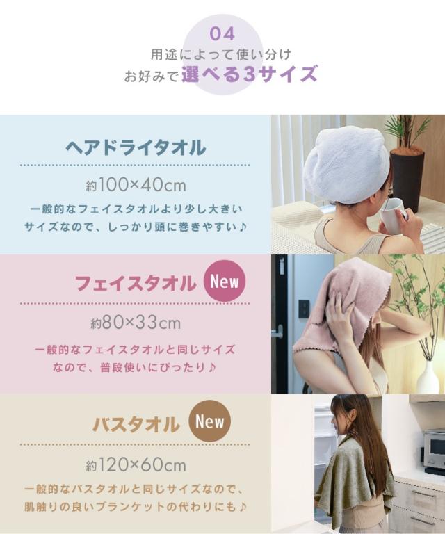 ふわっふわの極上吸水タオルシリーズに、ヘアドライ・フェイス・バスの3サイズが登場!