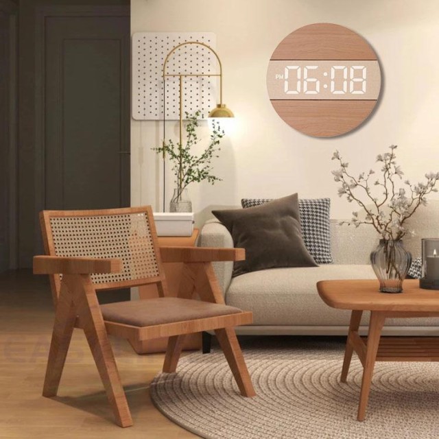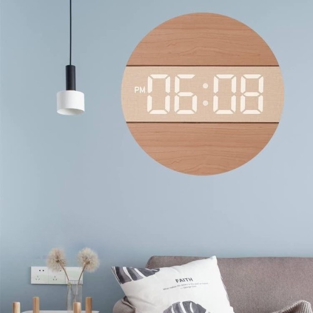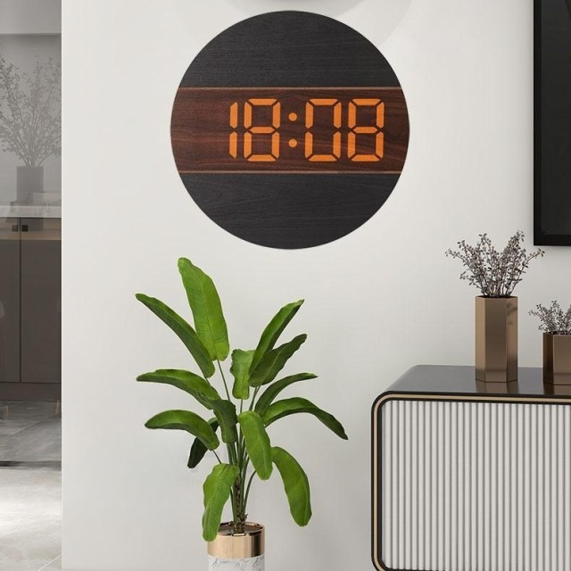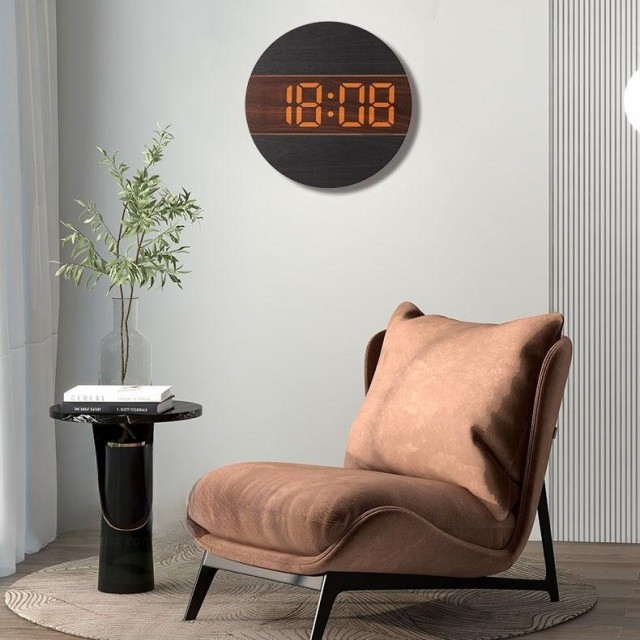 【LED大スクリーン】掛け時計は天然木製デザインを採用し、部屋に自然な雰囲気を作り出し、掛け時計の中にはLED大文字を設けて見え、全方位がはっきり見え、オレンジデジタル設計を採用し、目の疲れを緩和し、遠く時でも見やすい、時計の背面3つのボタンの操作が簡単で、簡単に見たい時に必要な方に最適です。