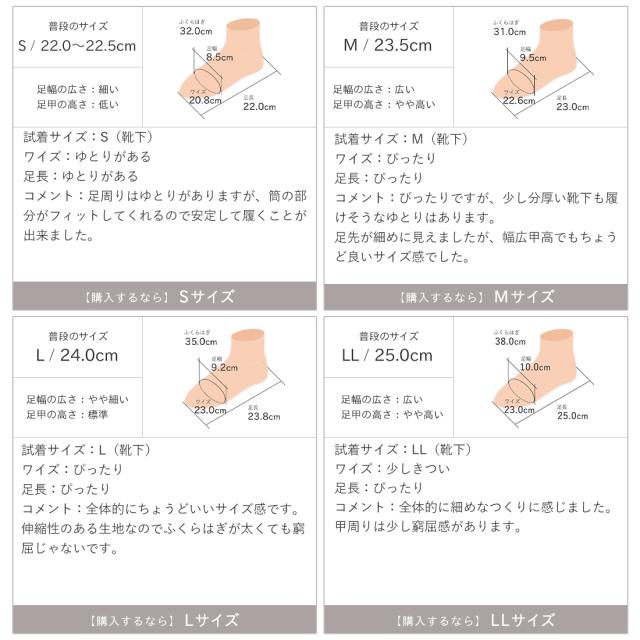 長さ | ワイズ | 幅 | ヒール | 筒丈 | 履き口周り | ふくらはぎ周り | 足首周り |